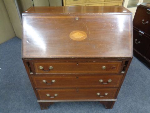A 19th century inlaid mahogany writing bureau fitted three drawers
