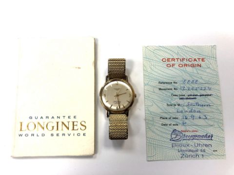 A Gentleman's 9ct yellow gold Longines 'Flagship Automatic' wristwatch, on expansion strap, dial width 34 mm.