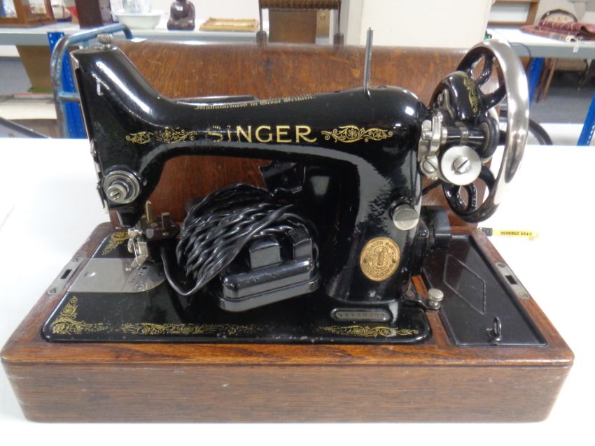A 20th century Singer sewing machine (electrified) in case.
