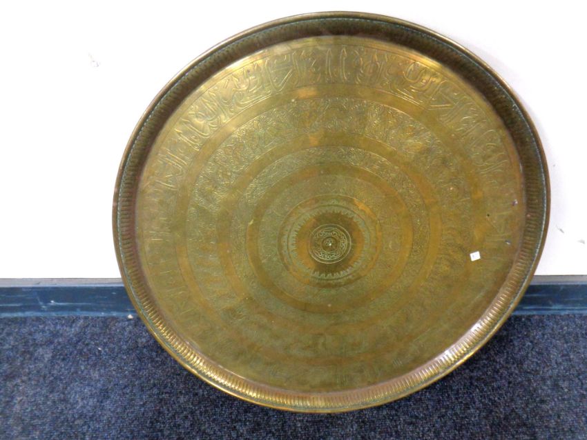 A circular Eastern brass plaque (width 58cm).