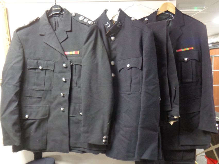 A quantity of fireman's uniforms, two caps and a quantity of buttons