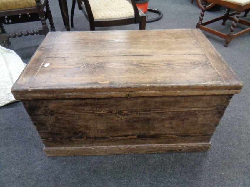 An antique pine blanket box.