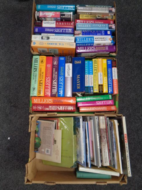 Three boxes containing assorted antique price guides, art sale catalogues etc.