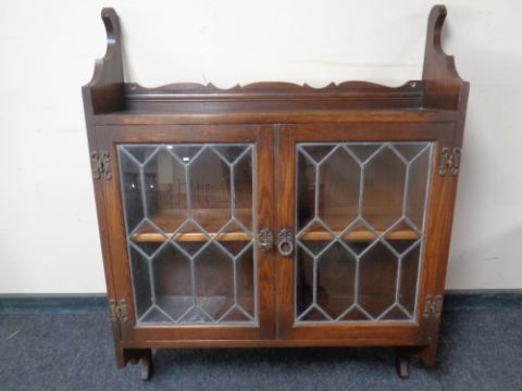 A Jaycee Furniture double door wall cabinet with leaded glass doors.