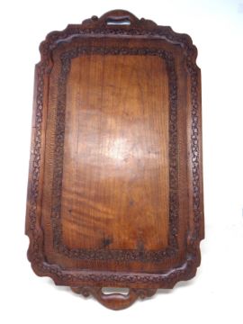 A carved Eastern hardwood twin handled serving tray, length 60 cm