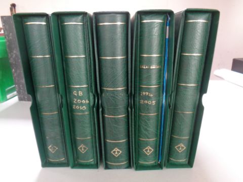 Five albums in slip covers of Great British stamps.