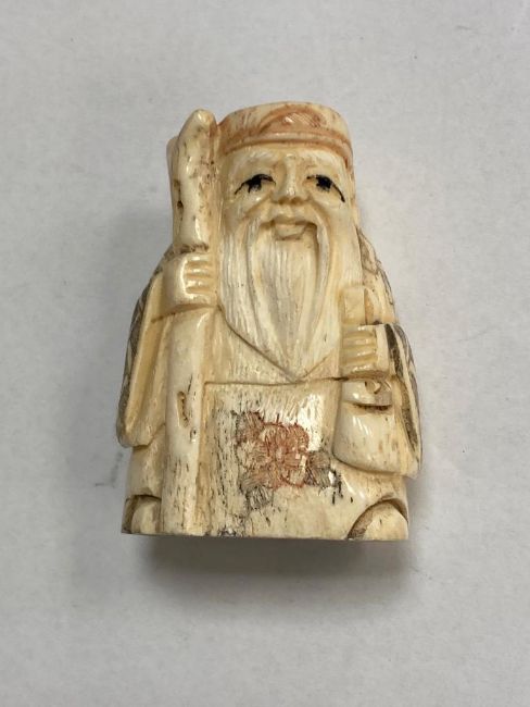 A carved bone Chinese netsuke - village elder with staff