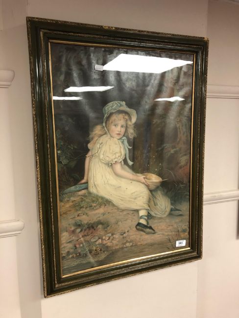 A chromolithographic print depicting a child under a tree, 44cm x 63cm.