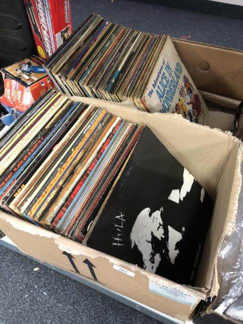 Two boxes containing vinyl LPs including Rock, Country, compilations etc.