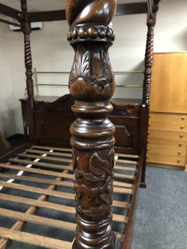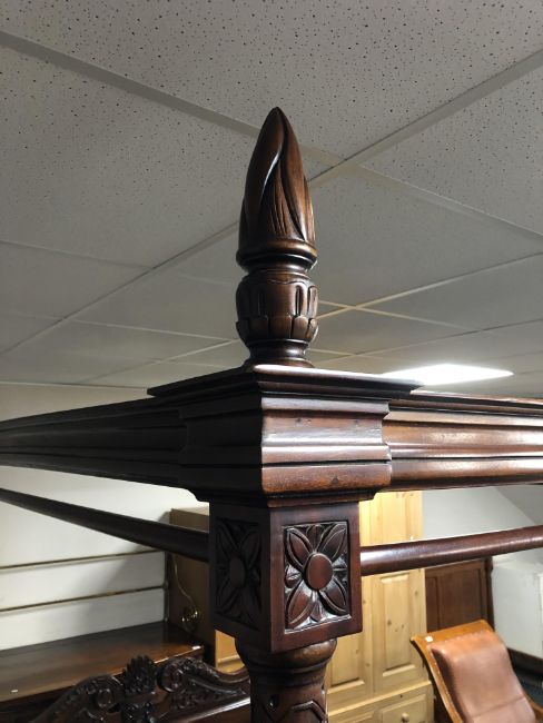 An impressive Victorian style 4'6" four poster bed on claw and ball feet.
