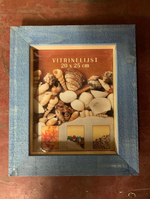 Three crates containing a total of 12 Vitrinelijst box frames/montage cabinets, glazed and with a blue wood frame, 20 cm x 25 cm x 4 cm, all brand new and still in original packaging. (12)