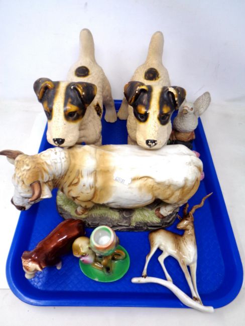 A tray containing Leonardo collection pottery figure of a bull and further animal ornaments.