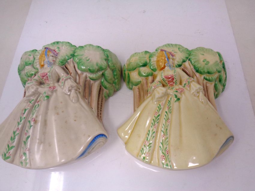 A pair of Clarice Cliff Newport pottery china wall pockets.