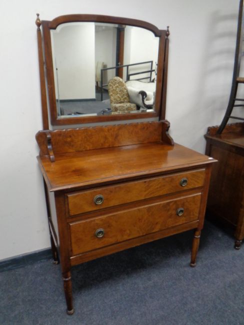 An Edwardian walnut two drawer dressing chest on raised legs together with matching three drawer chest.