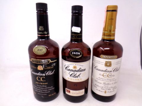 Three bottles of Canadian Club Whisky (1 Litre and 1.44 Litres).