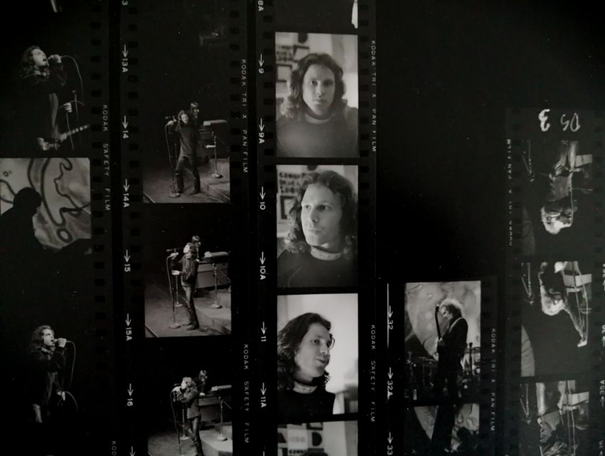 Contact sheet of Jim Morrison on the 28th March 1968 at Filmore East, printed by photographer David Sygall in 1986.