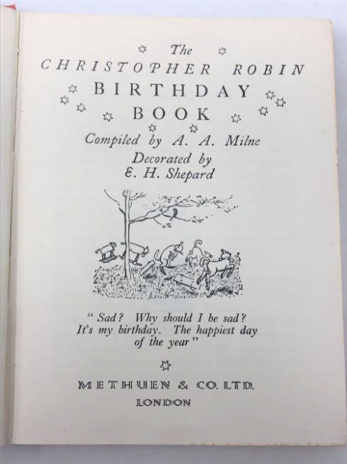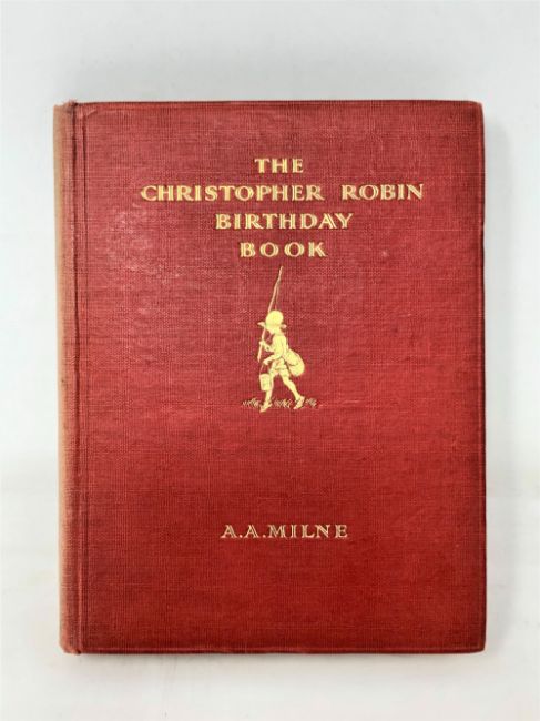 The Christopher Robin Birthday Book by A. A. Milne, Decorated by H. Shepard, a volume, first edition, hardbound, red cloth with pictorial gilt, 216 pages, published by Methuen & Co. Ltd., 1930.
