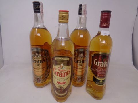 Four Bottles of Grant's Whisky including two Grant's 100 US Proof Superior Strength Scotch Whisky (1 Litre) bottles, Grant's Finest Scotch Whisky (0.7 Litres) and Grant's Blended Scotch Whisky (0.7 Litres).