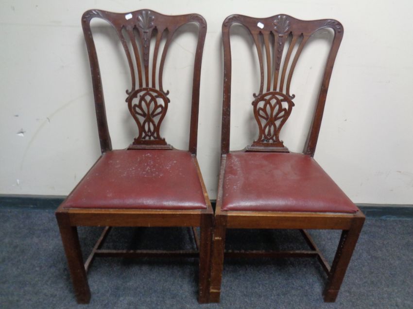 A pair of Edwardian mahogany dining chairs.