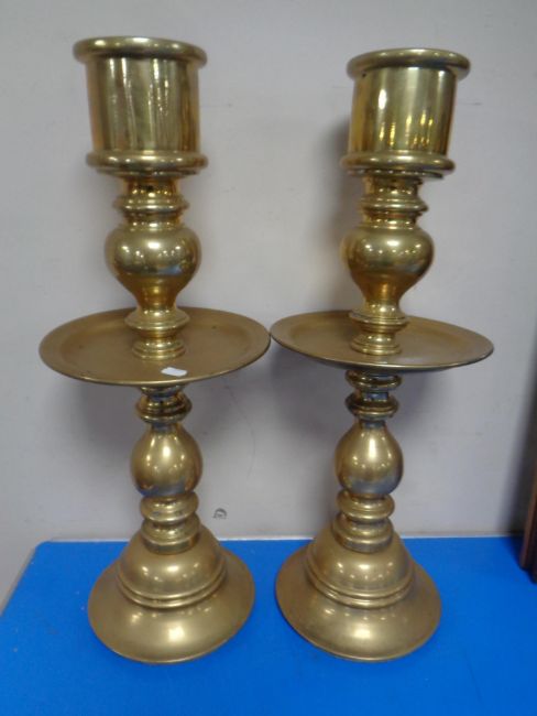 A pair of heavy brass Turkish candlesticks (height 64cm).