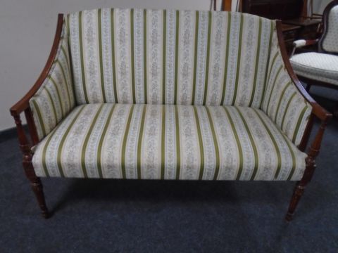 A Regency style beech framed salon settee in striped floral fabric