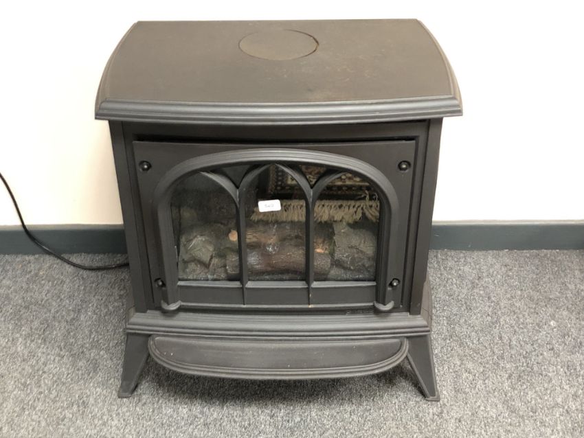 A Gazco Ashdon Cast Iron Electric Stove, Model No. E8613, with remote control unit, height 65 cm, width 65 cm, depth 50 cm.