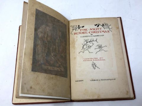 Arthur Rackham, 1867 - 1939 (Illustrator) : The Night Before Christmas by Clement C. Moore, a volume, hardbound, red cloth, 37 pages, published by George C. Harrap & Co. Ltd., 1932.