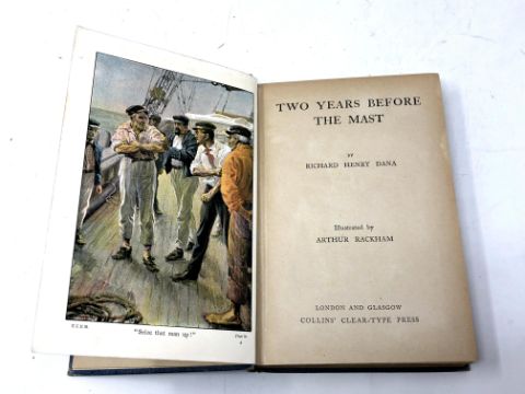 Arthur Rackham, 1867 - 1939 (Illustrator) : Two Years Before the Mast by Richard Henry Dana, a volume, hardbound, pictorial blue cloth, 304 pages, published by Collins' Clear-Type Press.