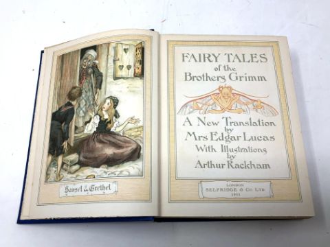 Arthur Rackham, 1867 - 1939 (Illustrator) : Fairy Tales of the Brothers Grimm - A New Translation by Mrs Edgar Lucas, a volume, hardbound, blue cloth, 464 pages, published by Selfridge & Co. Ltd., 1911.