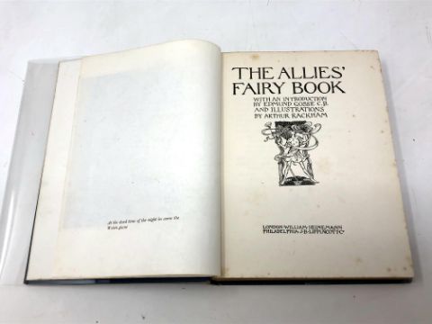 Arthur Rackham, 1867 - 1939 (Illustrator) : The Allies' Fairy Book with an introduction by Edmund Gosse, a volume, hardbound, blue cloth, 122 pages, published by William Heinemann.