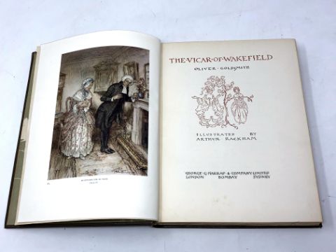 Arthur Rackham, 1867 - 1939 (Illustrator) : The Vicar of Wakefield by Oliver Goldsmith, a volume, hardbound, brown Morocco with pictorial gilt, 232 pages, published by George G. Harrap & Company Limited, 1929.