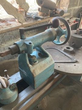 A mid 20th Century lathe manufactured by Oliver with various parts and accessories