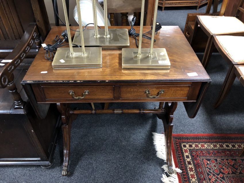 A Regency style mahogany flap sided sofa table fitted with two drawers.