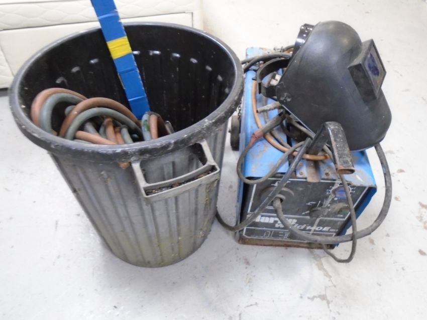A Clark Weld 140e mk2 welder with hoses, welding rods and face mask.