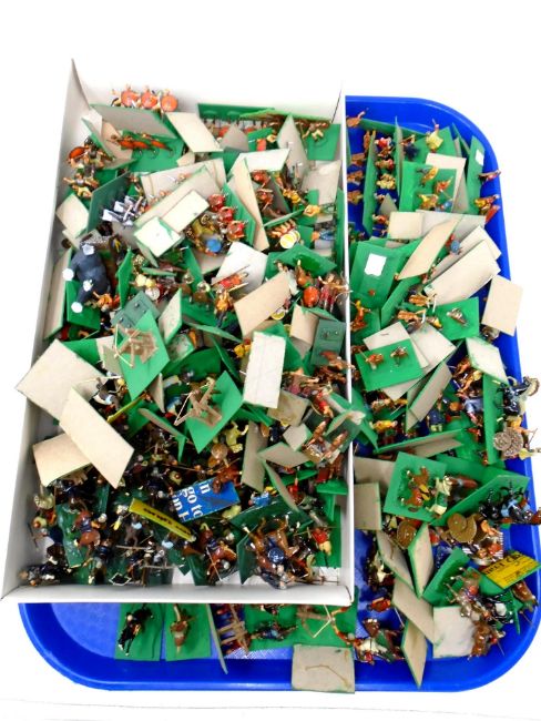 A tray of a large quantity of die cast plastic military figures including Roman soldiers etc.