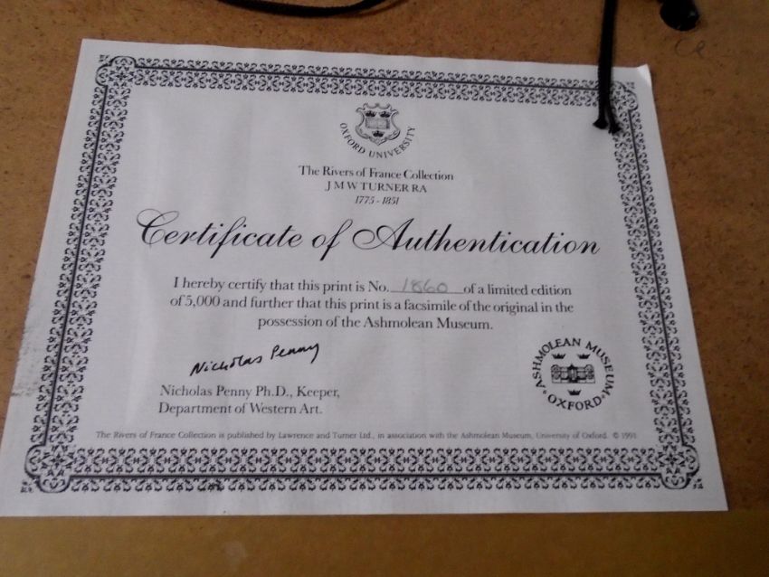 A limited edition print after J. M. W. Turner : Rivers of France collection, no. 1860 together with a further contemporary framed print.