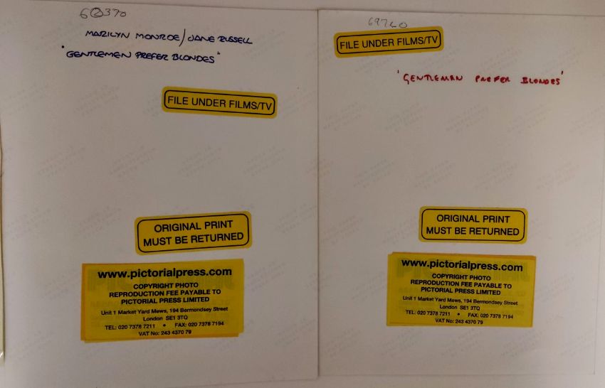 Original press photos of Marilyn Monroe and Jane Russell in the 1953 film 'Gentleman Prefer Blondes' as well as a copy of her April 13 1955 phone bill of her stay at 'The Waldorf Astoria' New York
