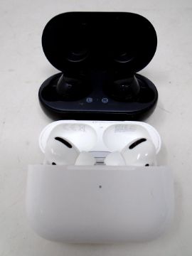 A set of Apple Airpods in charging case together with a further pair of Samsung Earbuds in case.