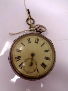 A silver open faced key wound pocket watch.
