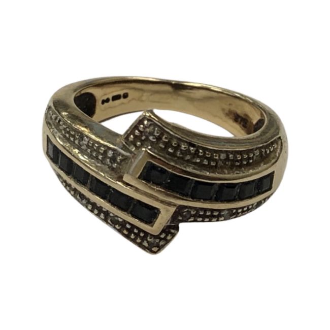A 9 carat gold twist ring set with sapphires (4.7g).