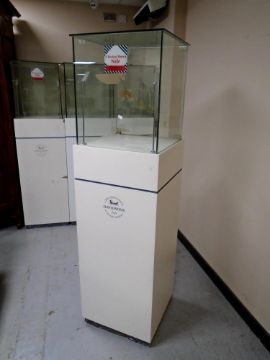 A jeweller's glass display cabinet on stand with keys.