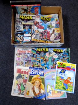 A box containing 20th century comics and annuals including Mask, My Little Pony, Mandy, Eagle etc.