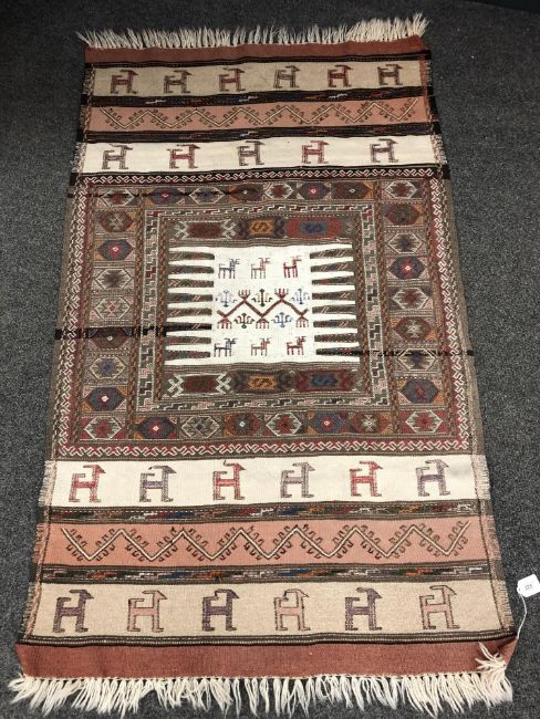 A Caucasian rug of zoomorphic design, 152cm by 93cm