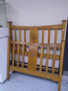 A pair of Edwardian oak Art Nouveau rail bed ends.