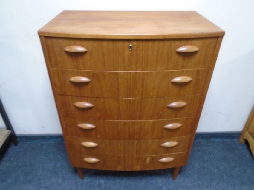 A mid-century Danish teak bow-fronted six drawer chest