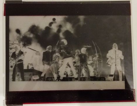 A Jacksons 1984 Victory tour on stage negative and two large 1990s Keystone, New York press agency photos of Michael Jackson performing 'Smooth Criminal' and 'Beat it'.