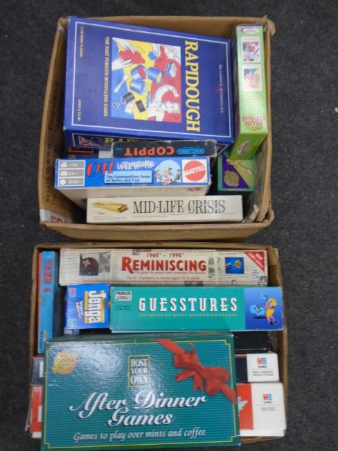 Two boxes of assorted board games.