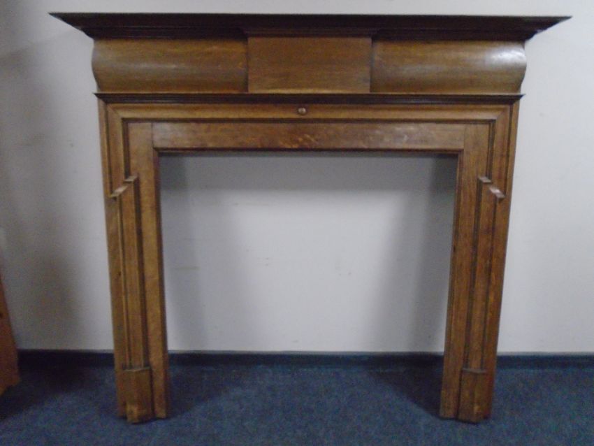 An Edwardian oak fire surround 146 cm x 165 cm x 21 cm