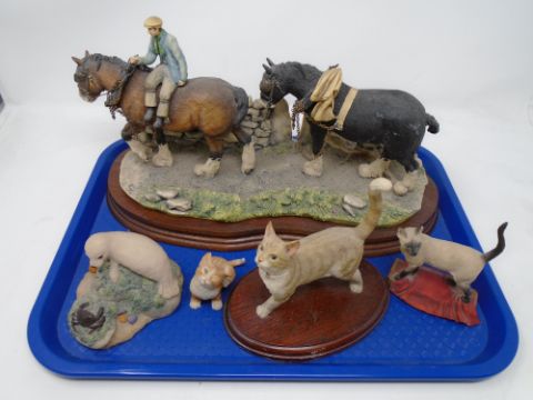 A tray of Border Fine Arts figures including 'Coming Home' no. JH9 from the All Creatures Great and Small collection, on plinth, together with further cat figures etc.