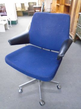 A 20th century Scandinavian swivel desk armchair upholstered in a blue fabric.